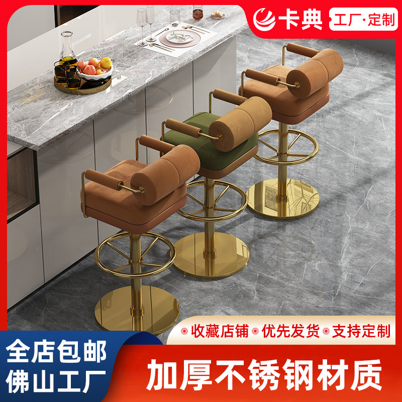 Nordic Solid Wood High Stool Italian Style Coffee Bar High Rotary Stool Jewelry Counter Stainless Steel Bar Chair