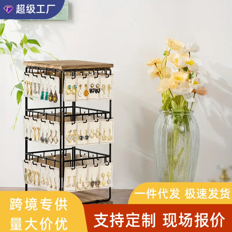 XINYI Earrings Display Rack Rotating Ear Hangers Earrings Rack Display Rack Stall Live Display Rack Rotating Wooden