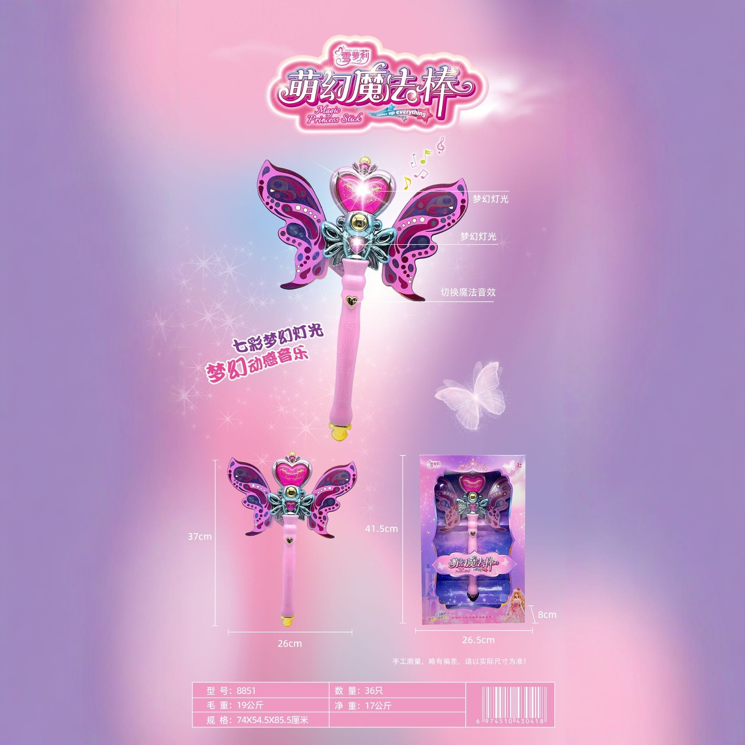 Children's Rotating Magic Wand Princess Sound and Light Scepter Gift Box Luminous Play House Gift Girl Fairy Stick Toy