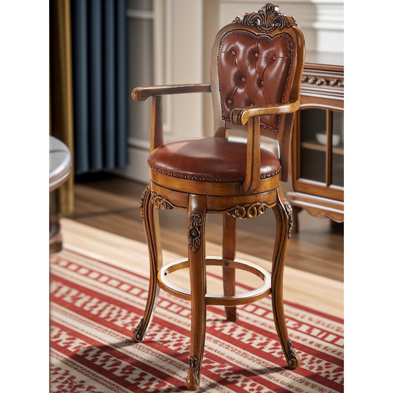 American Style Solid Wood Bar Chair European Style Rotating Backrest Bar Chair Jewelry Store Counter Special Household High Stool