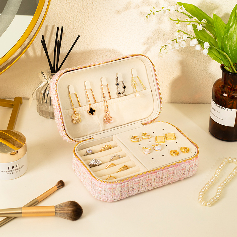 Creative portable fabric Chanel style jewelry box ring earrings bracelet jewelry storage box wedding hand gift box
