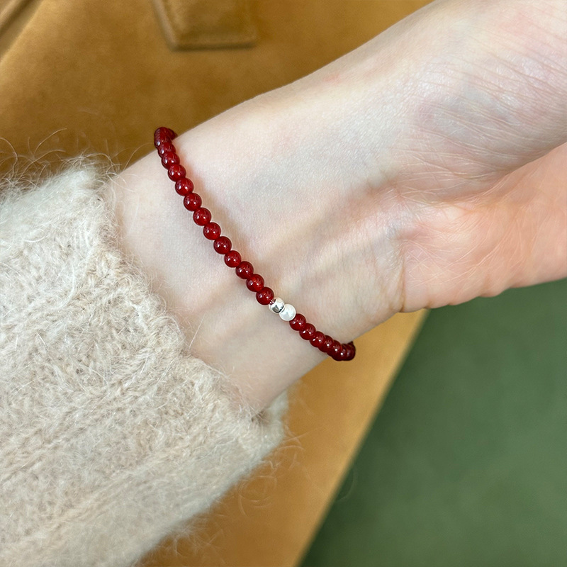 925 Sterling Silver Red Agate Silver Beads Pearl Bracelet Women's Simple Handmade Design Sweet Elegant Beaded Bracelet B3299