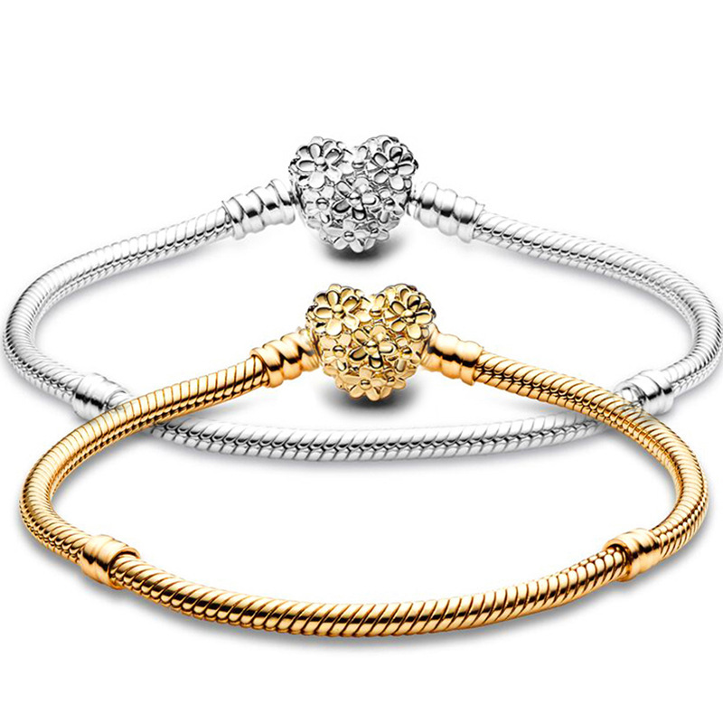 Panjia Moments Piled Daisy Gold Silver Buckle Snake Bone Chain Bracelet Bracelet Base Chain Spot Factory Straight Hair