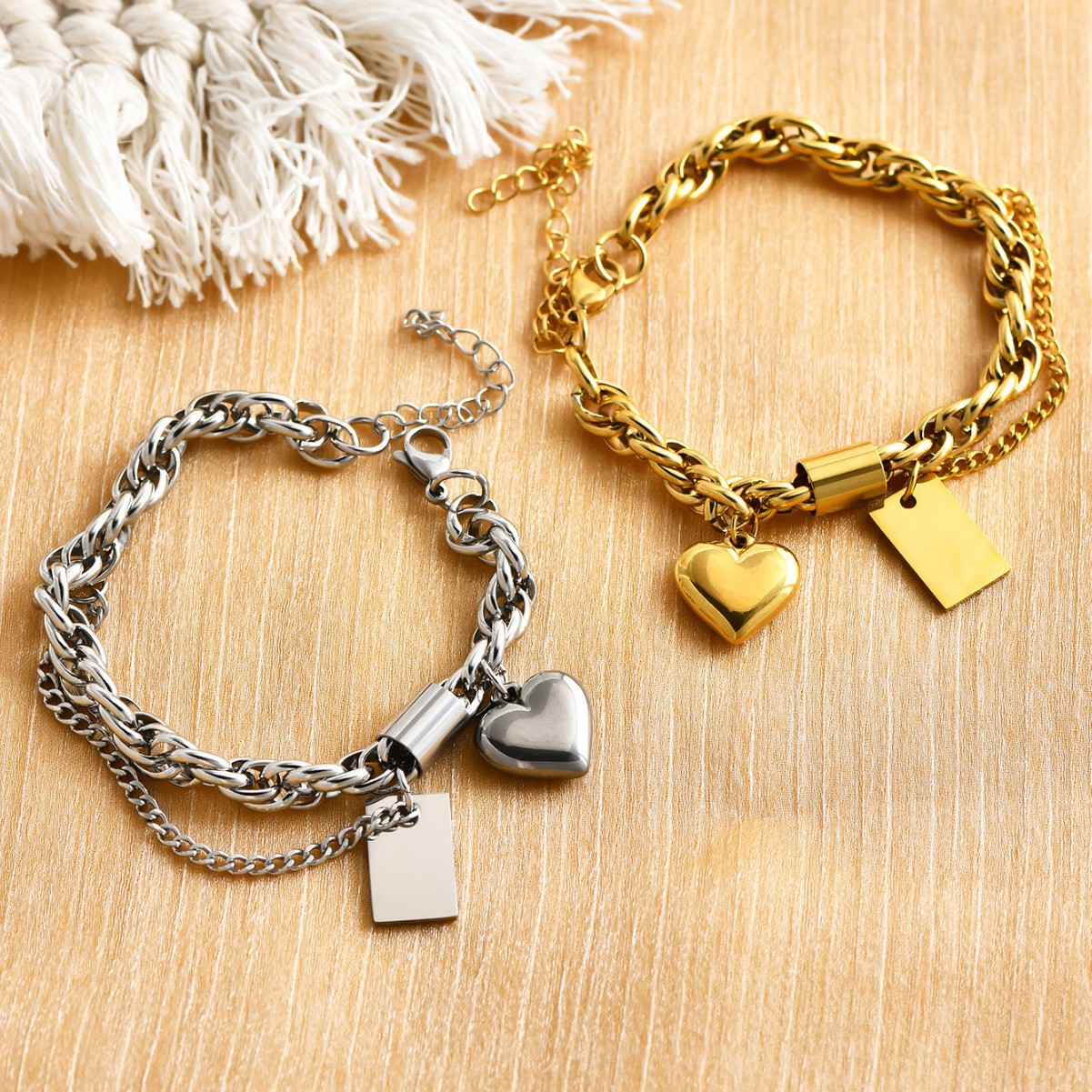 Cross-Border New Couple Bracelet, Simple Stainless Steel Bracelet, Personalized Engraving, Four-Color Curved Brand, Amazon Best-Selling Supply