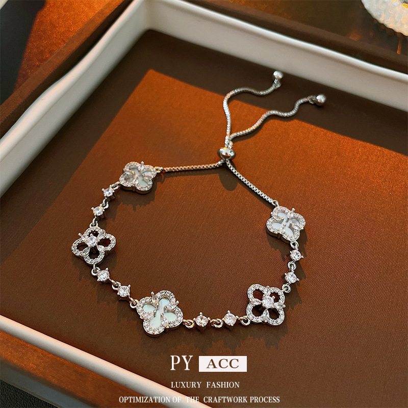 Exquisite Zircon Flower Cut Out Pull-Out Bracelet Korean Ins Fashion Accessible Luxury Bracelet Personalized High-End Bracelet