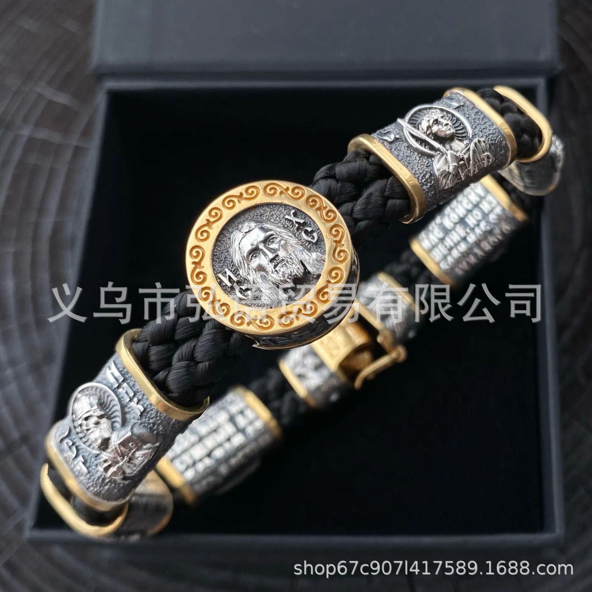 Cross-Border Temu Leather European and American Street Trendy Bracelet Alloy Laser Multi-Layer Braided Cross-Shaped Bracelet