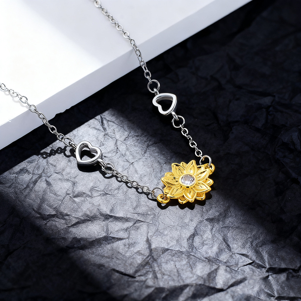 Amazon Aliexpress Elegant Sweet Bracelet Sunflower Hollow Love 925 Silver Bracelet Cross-Border Wholesale Hot Style