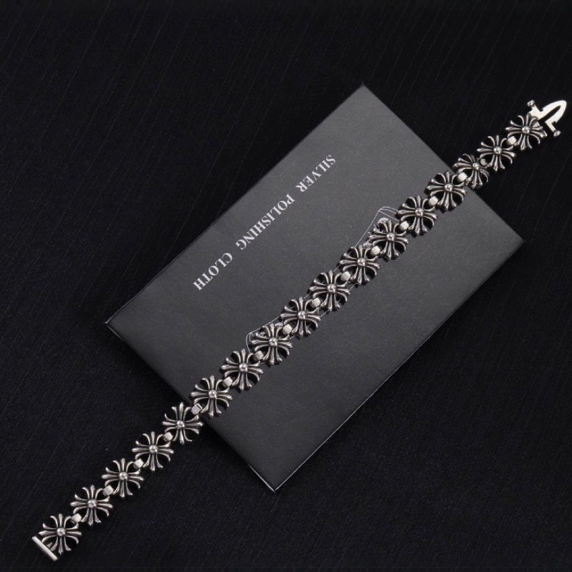 Ch Trendy Brand Cross-Border Crow Heart Sterling Silver S925 Retro Trendy Hip-Hop Rock Gothic Thai Silver Men's Cross Bracelet
