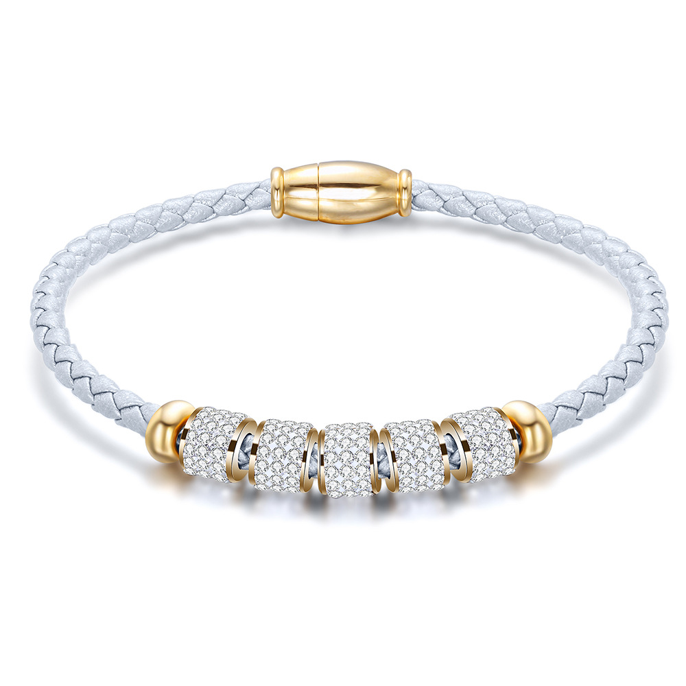 Cross-Border Stainless Steel Magnetic Buckle Handmade Leather Bracelet for Men with Diamond Accessories for Women Manufacturer Wholesale Magnetic Attraction