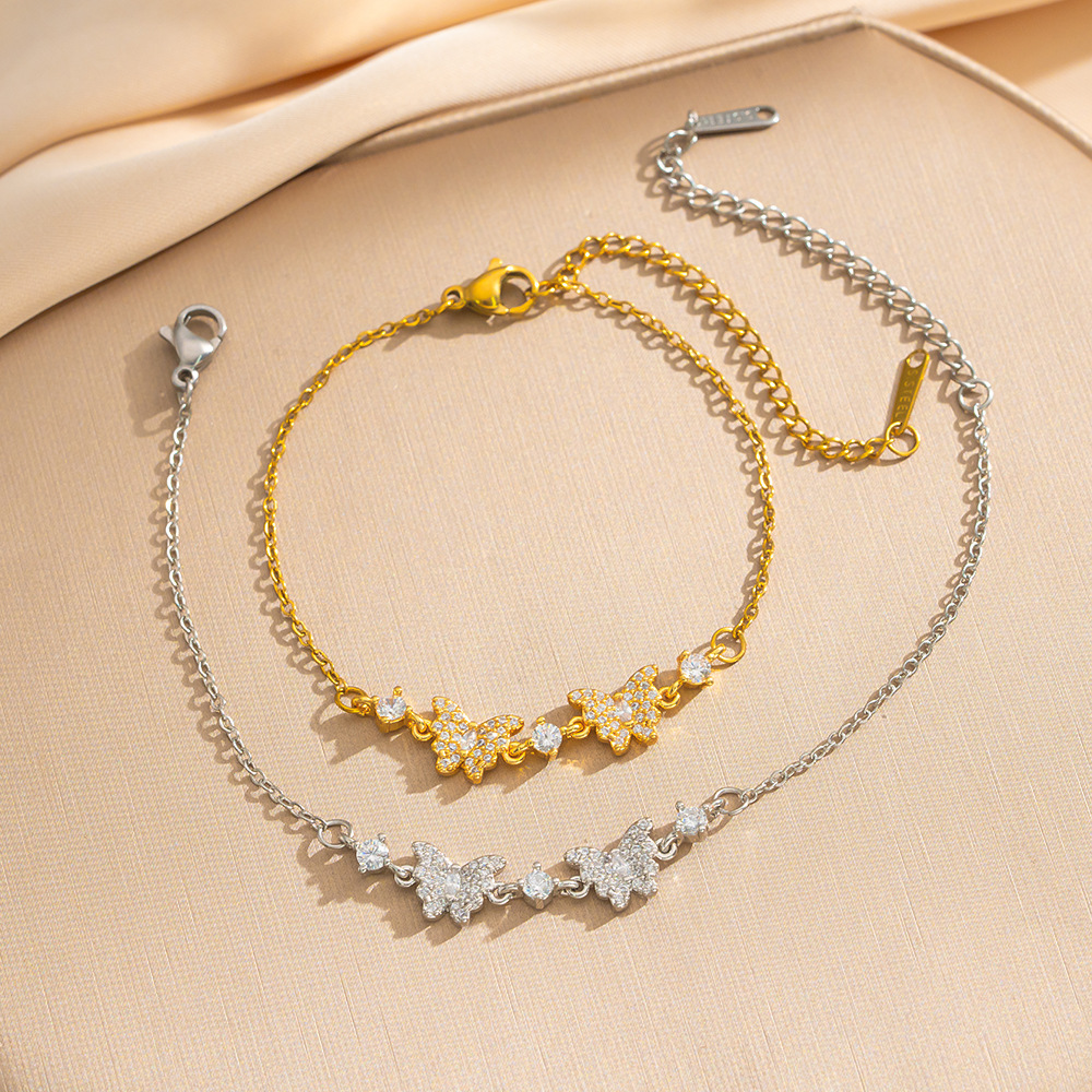 Real Gold Electroplated Bow Inlaid with Zirconium Adjustable Bracelet Light Luxury High-End Temperament Bracelet French Retro Fashion Bracelet