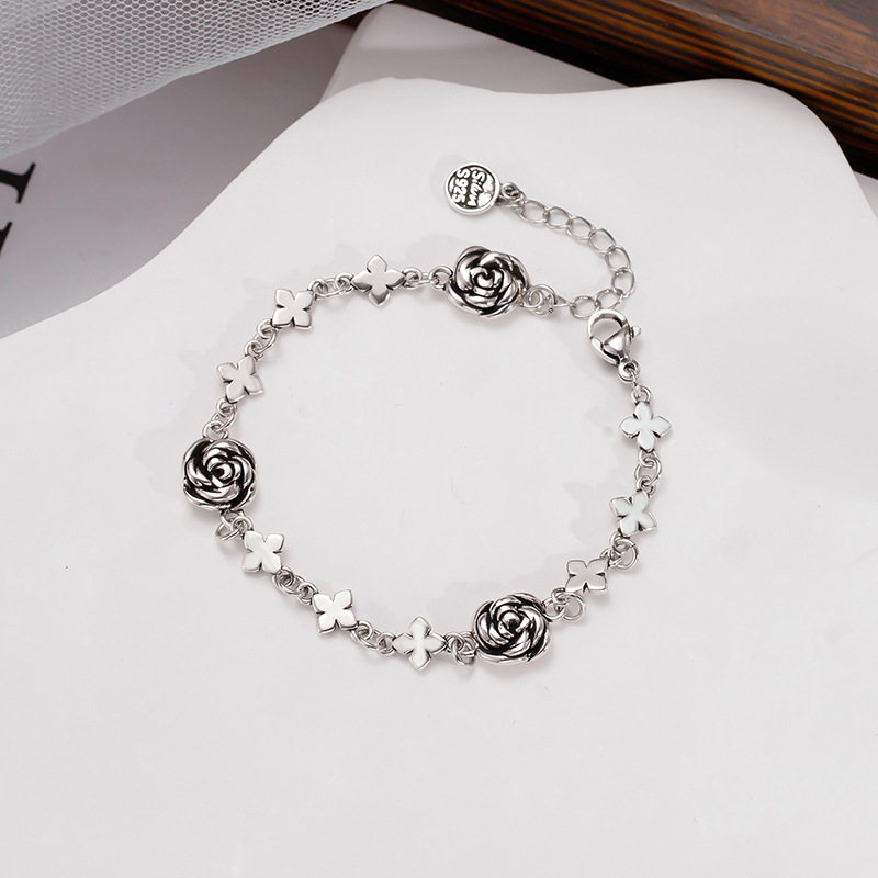 Diablo Vintage Cross Camellia Rose 925 Sterling Silver Bracelet Girls Niche Old High-end Sense Exquisite Jewelry