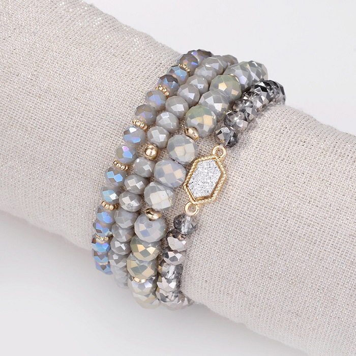 European and American eBay AliExpress handmade glass crystal stone beaded hexagonal crystal cluster bracelet bracelet suit jewelry