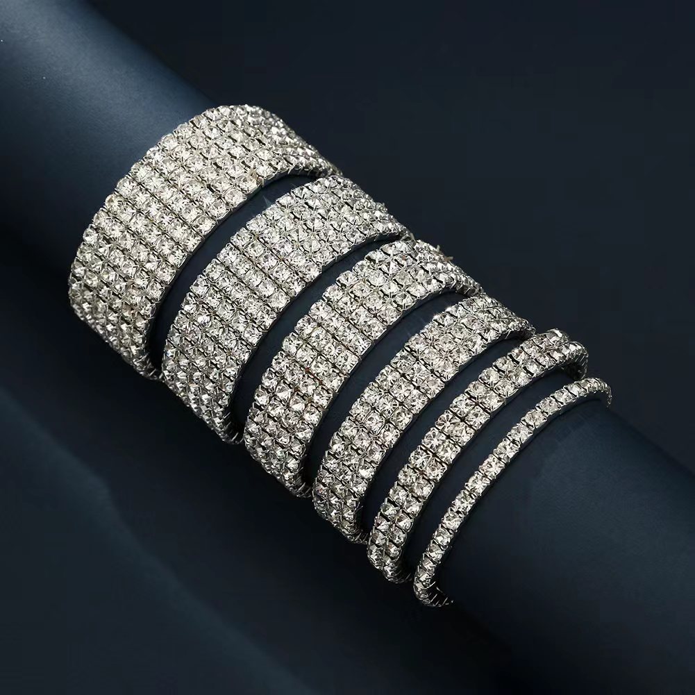 Cross-border hot sale 12345678 row elastic bracelet bridal all-match diamond-embedded full diamond bracelet wholesale