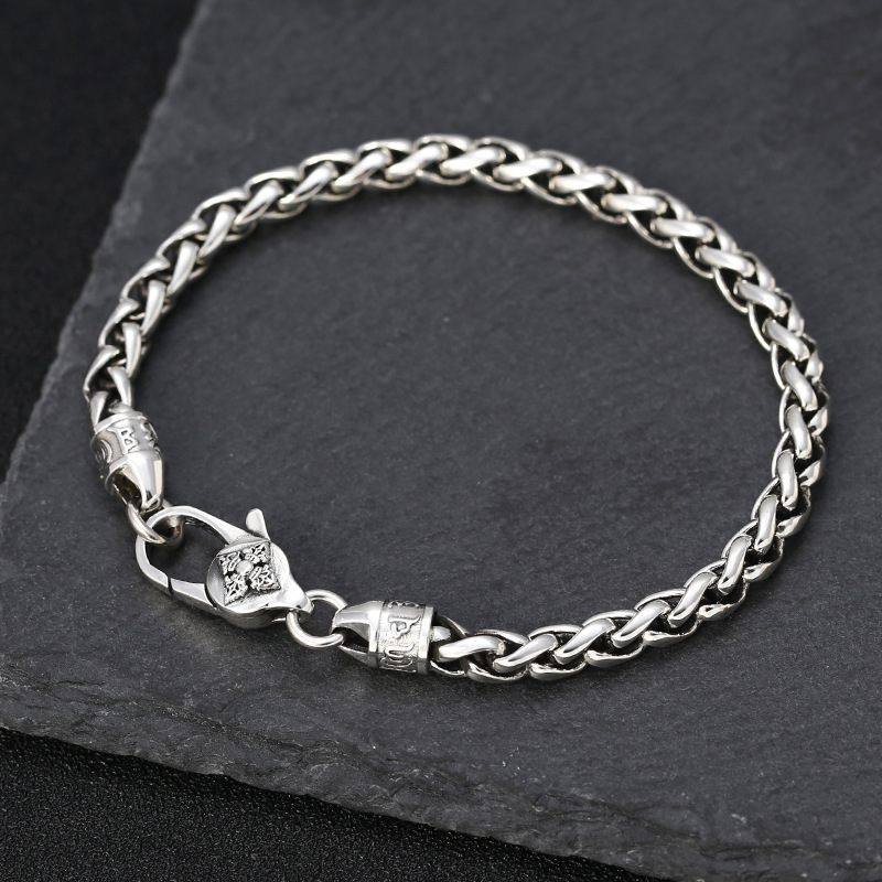 Wholesale s925 sterling silver jewelry fashion Thai silver pestle six words true words hemp rope men's bracelet