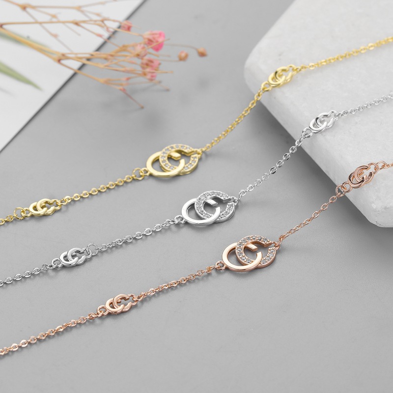New Jewelry Chanel Style Double C 925 Sterling Silver Diamond Bracelet Women's 18K Rose Gold Mori Style All-match Simple Bracelet