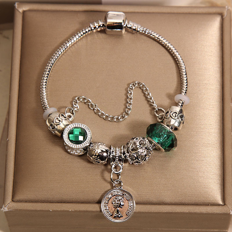 Panjia Style Bracelet Women's DIY Palace Vintage Green Coin Pendant Bracelet Ins Cyber Celebrity Mori Snake Bone Chain Bracelet