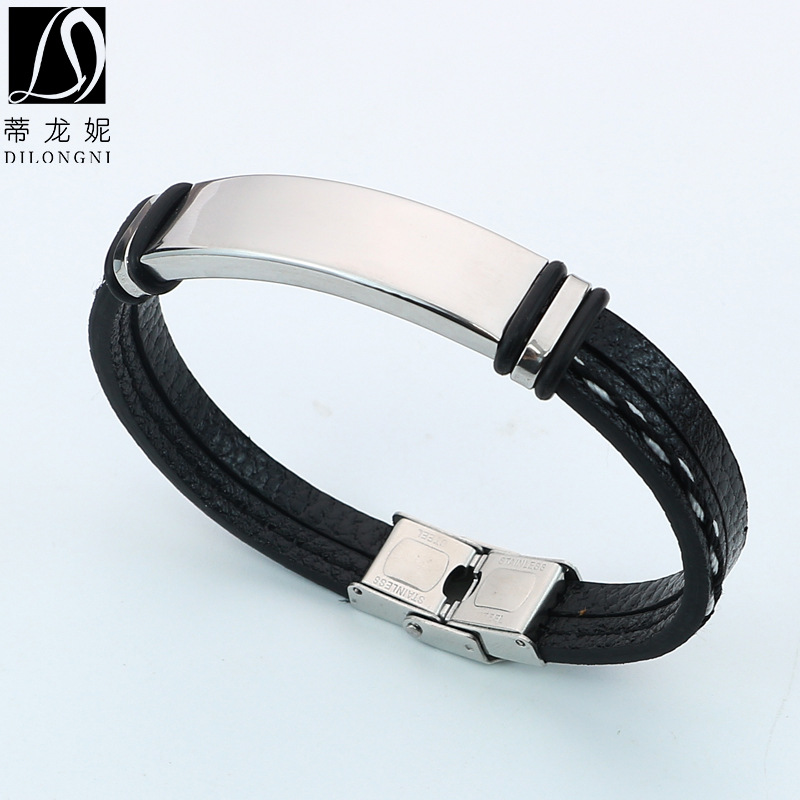 Simple leather rope stainless steel creative bracelet Korean board lettering punk style woven leather lovers bracelet wholesale