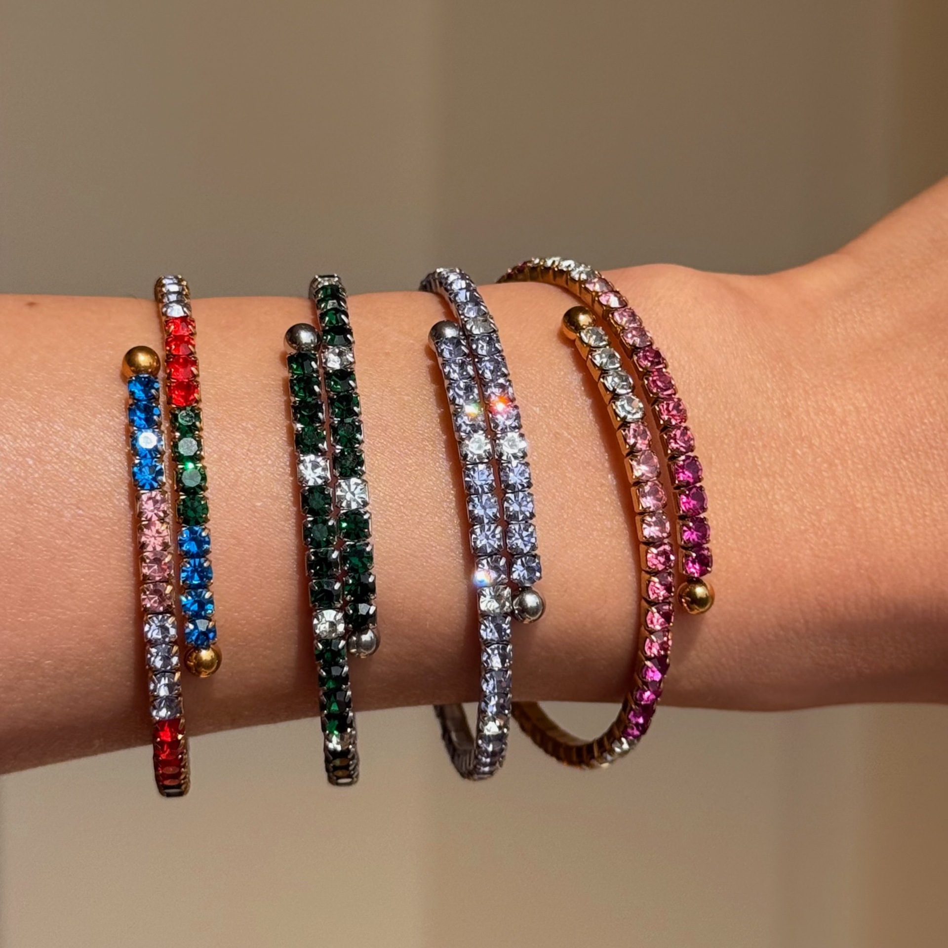in stock wholesale European and American cross-border 18k vacuum plated titanium steel bracelet super flash colored diamond honeycomb elastic tennis bracelet