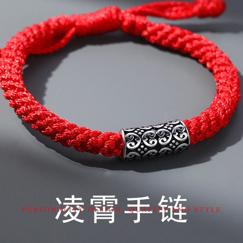 Retro Lingxiao Braided Bracelet Men's Trendyy Stylish Animal Year Red Rope Anti-Thai Silver Ethnic Style Totem