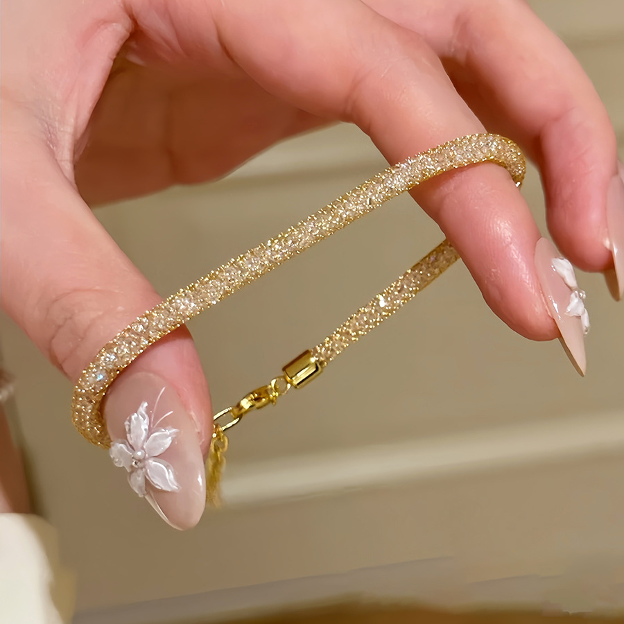 2025 New Style Light Luxury Rai Diamond Retro Court Style Strap Bracelet Retro Simple Niche Design Ribbon Bracelet