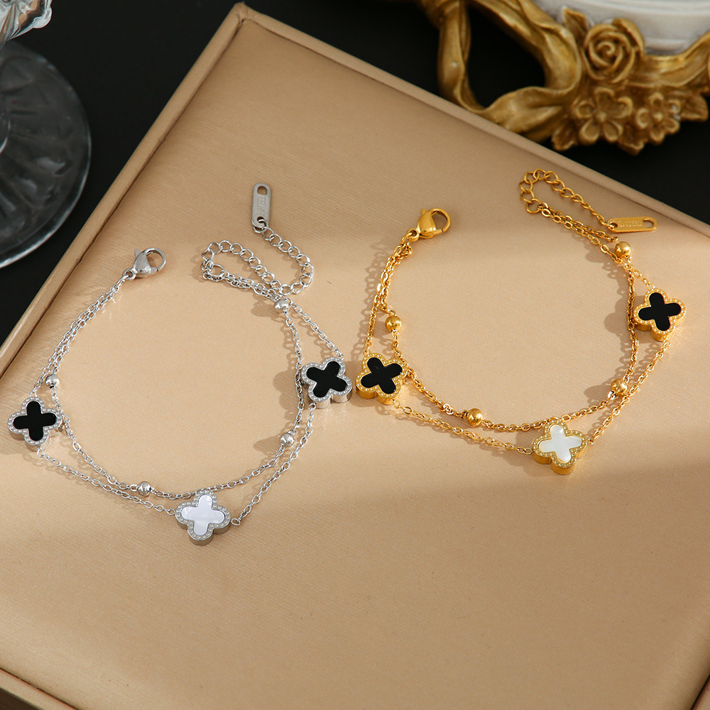 Korean version of simple double-sided four-leaf clover bracelet women's fashion double chain titanium steel 18k gold sweet temperament jewelry wholesale