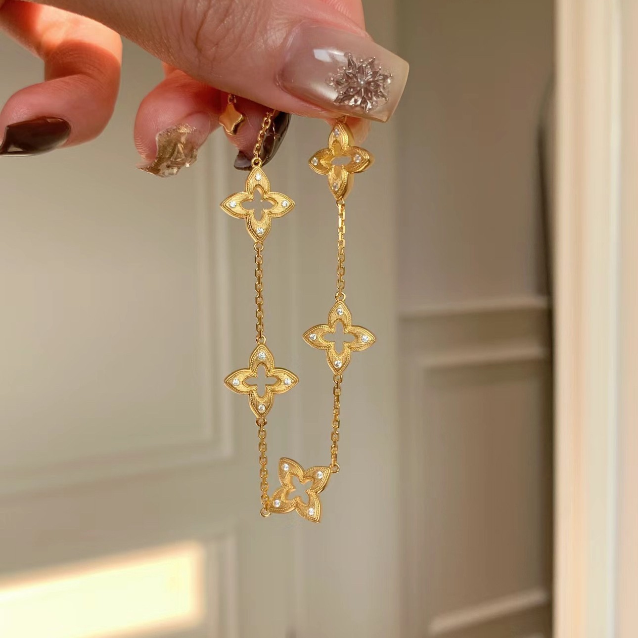 High-End Version Pure Silver Four-Leaf Clover Laser-Plated White Gold Five-Flower Bracelet for Women, V-Gold Fashion Light Luxury Jewelry 925 Silver Bracelet