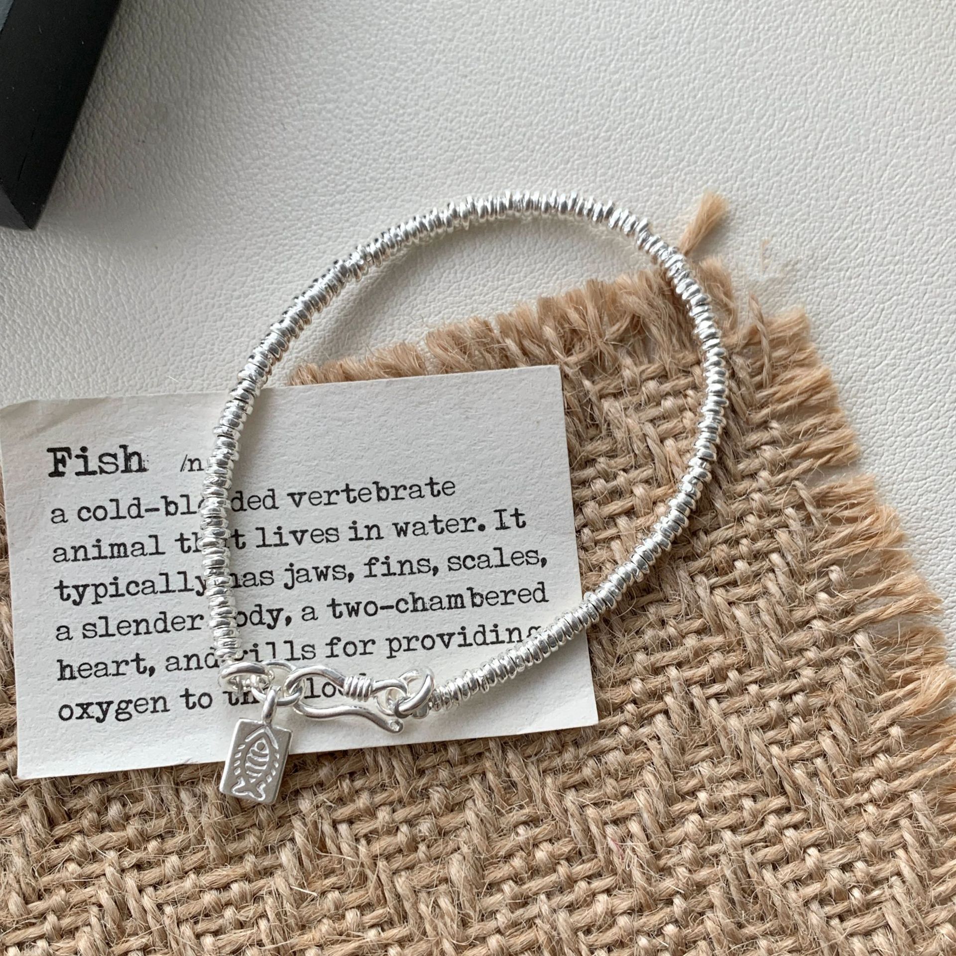 S925 Sterling Silver Small Fish Square Brand Silver Ring Bracelet Women's South Korea Cute Sweet High-end Niche Design Explosive Bracelet