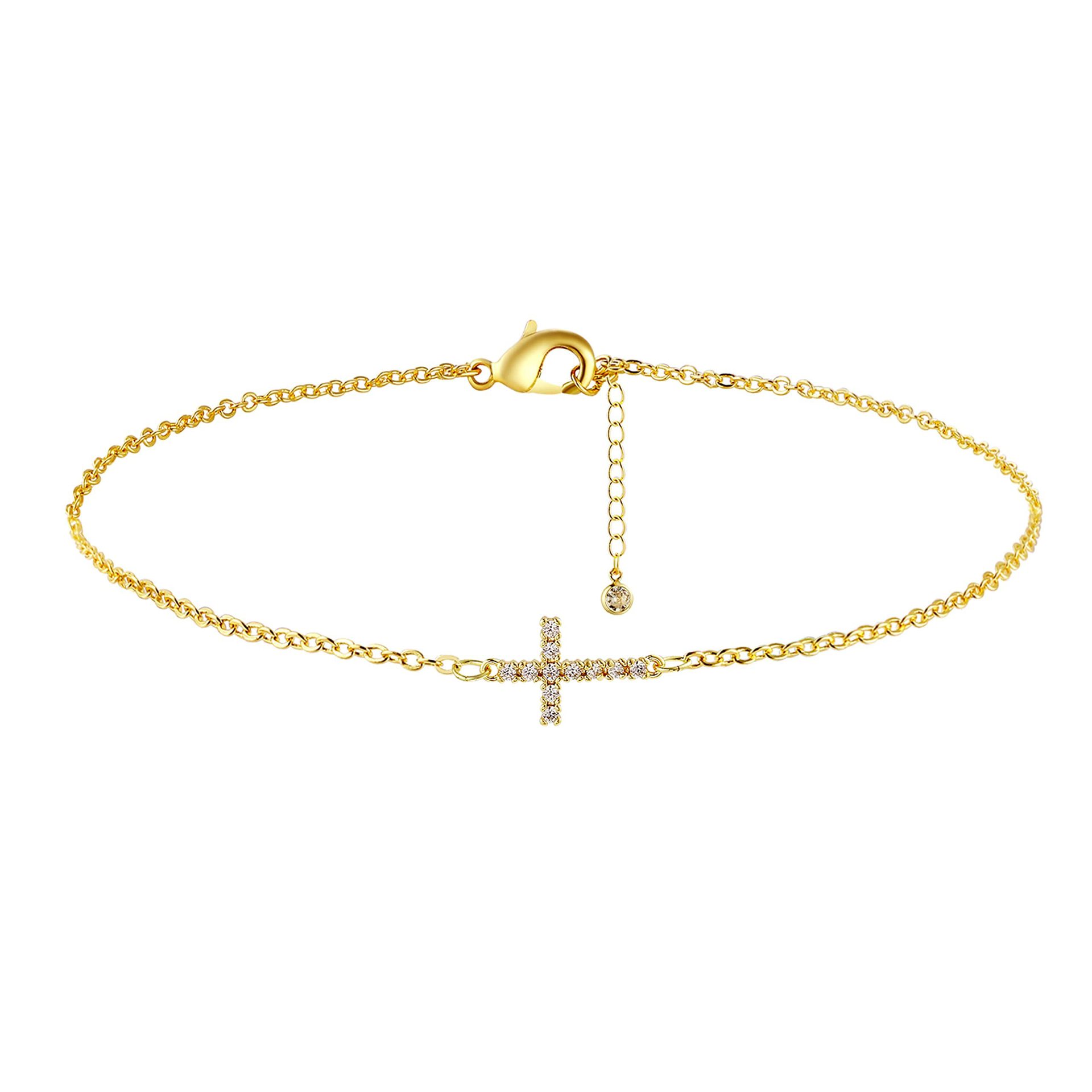 18K gold mini cross bracelet stainless steel chain copper inlaid zirconium environmental protection copper micro inlaid zircon cross bracelet