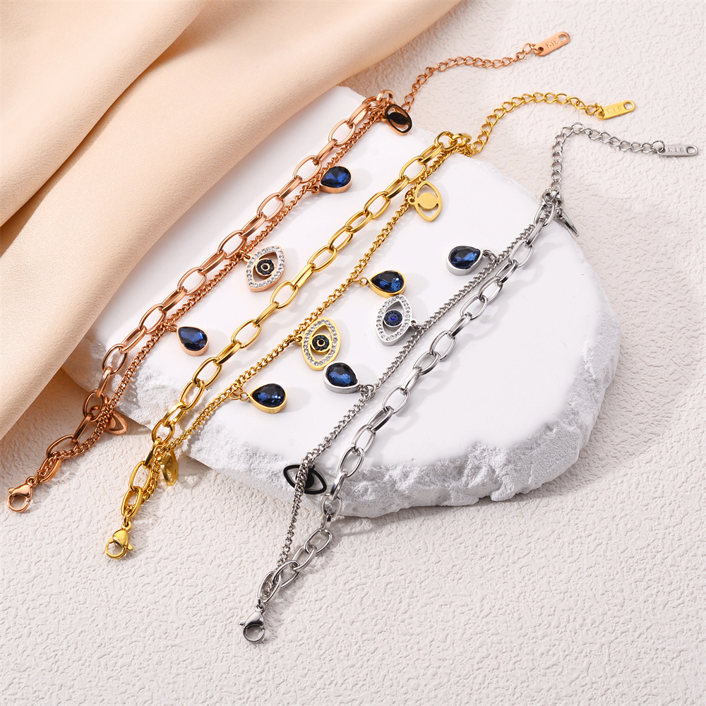 Stainless Steel Chain Plated with 18K Real Gold Bracelet Cut Out Turquoise Devil's Eye Micro-Paved Zircon Eye Bracelet for Women
