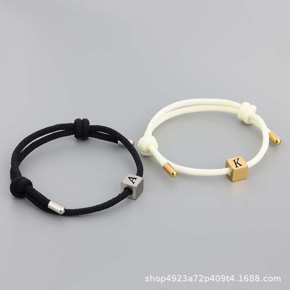 Stainless Steel Geometric Brushed Square Bracelets for Men and Women, Personalized Engraved Names, Hand-Woven Bracelets for Couples, Wholesale