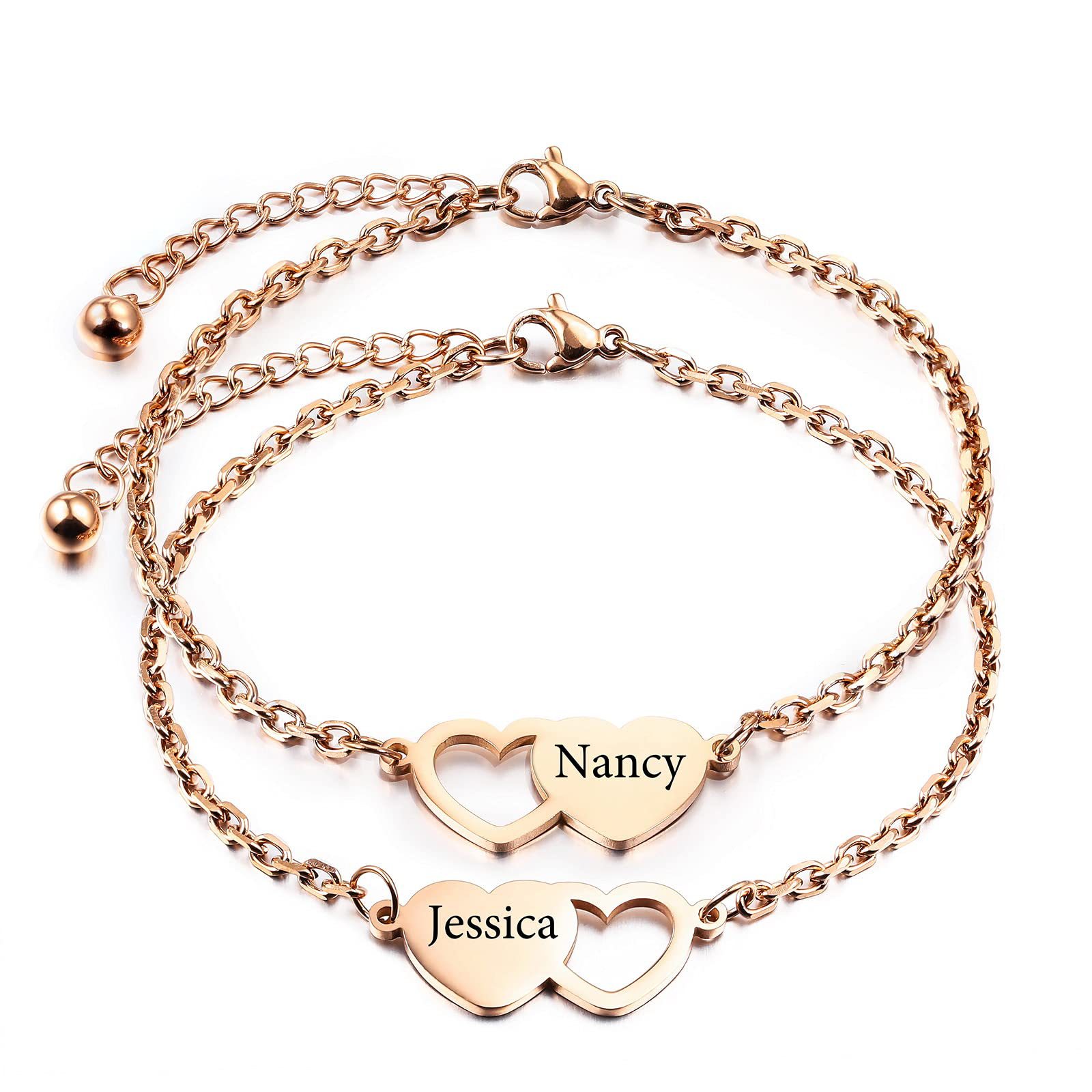 Women's Love Bracelet Stainless Steel Hollow Heart-Shaped Engraved Chain Adjustable Bracelet Double Love Engraved Bracelet
