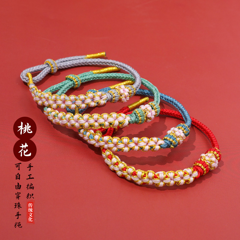 Shili Peach Blossom Bracelet Hand-Woven Rope Semi-Finished DIY Wearable Beads Gold Silver Jewelry Peach Blossom Knot Bracelet for Women
