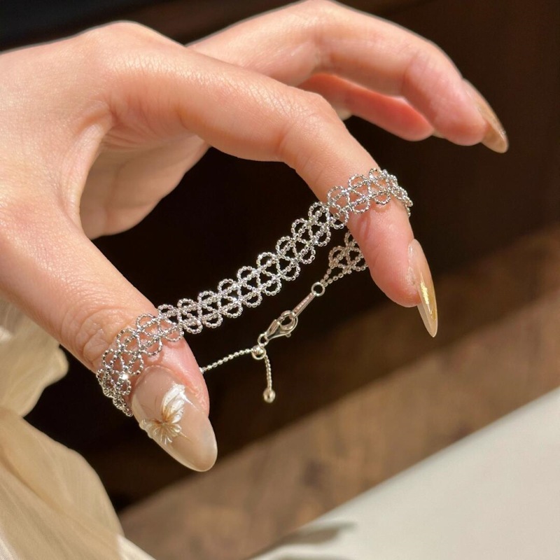 French Light Luxury Retro Ribbon Two-color Lace Bracelet Hollow Fashion All-match Exquisite Stacked High-end Elegant Jewelry