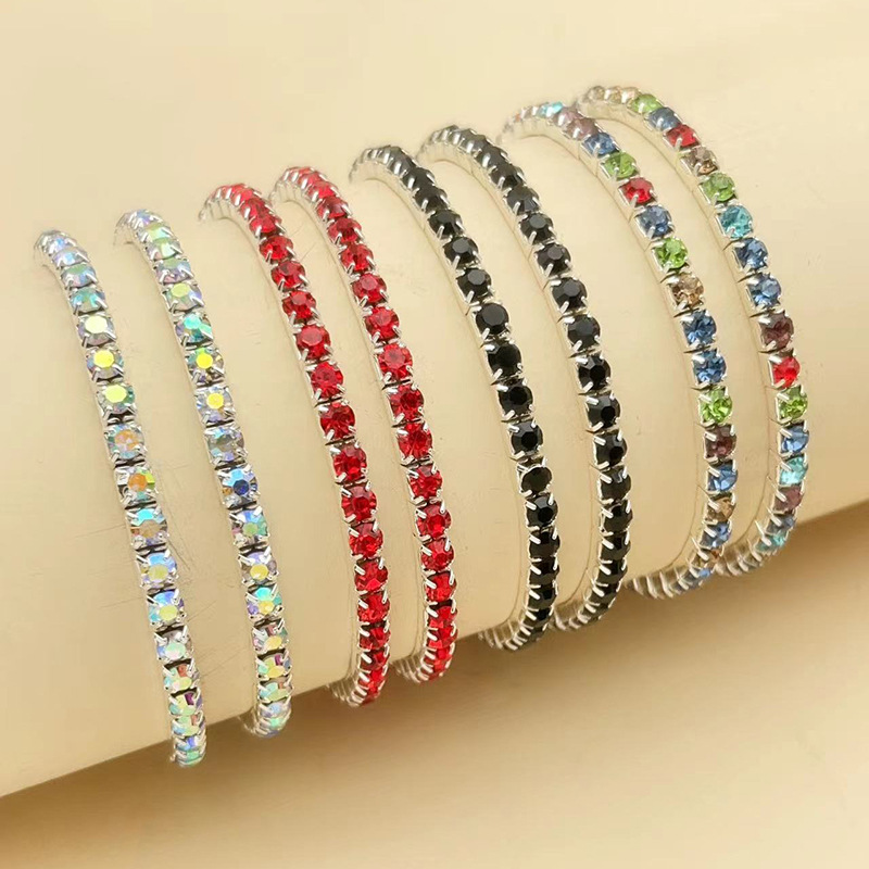 Single row rhinestone colored diamond elastic bracelet Europe and the United States hot 4mm rhinestone bracelet 16 row claw chain