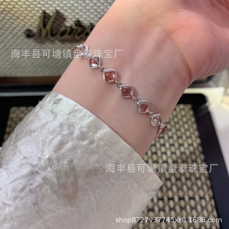 Manufacturers Wholesale Natural Black Gold Super Sugar Cube Crystal Bracelet S925 Silver Inlaid