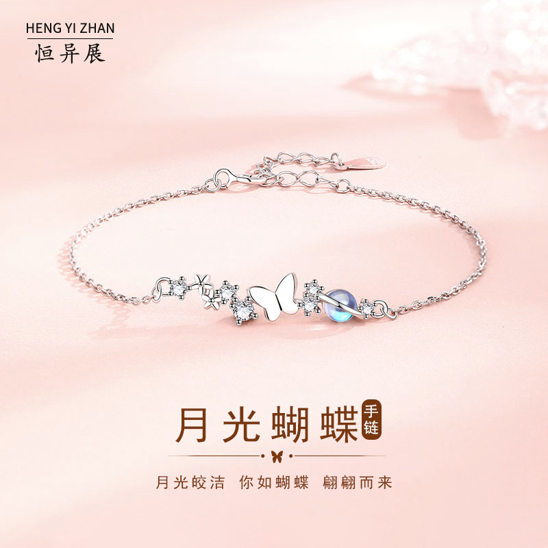 Hengyi Exhibition Summer New Moonstone Butterfly Bracelet Sterling Silver 925 Niche Light Luxury ins Style Student Girlfriend Bracelet