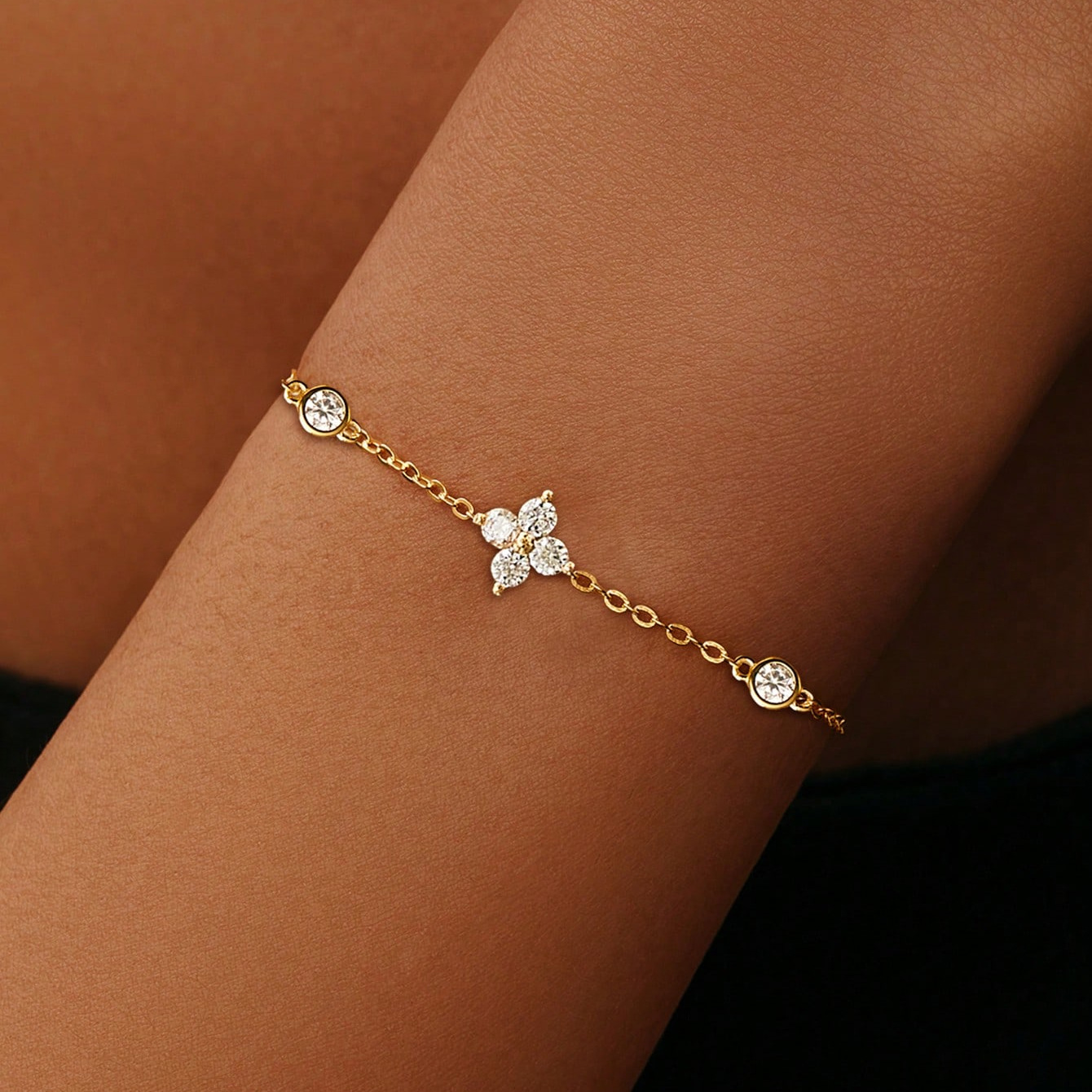 A 925 Silver Sweet and Exquisite Four-Leaf Flower Zircon Bracelet, Suitable for Daily Holiday Gifts and All-Season Wear