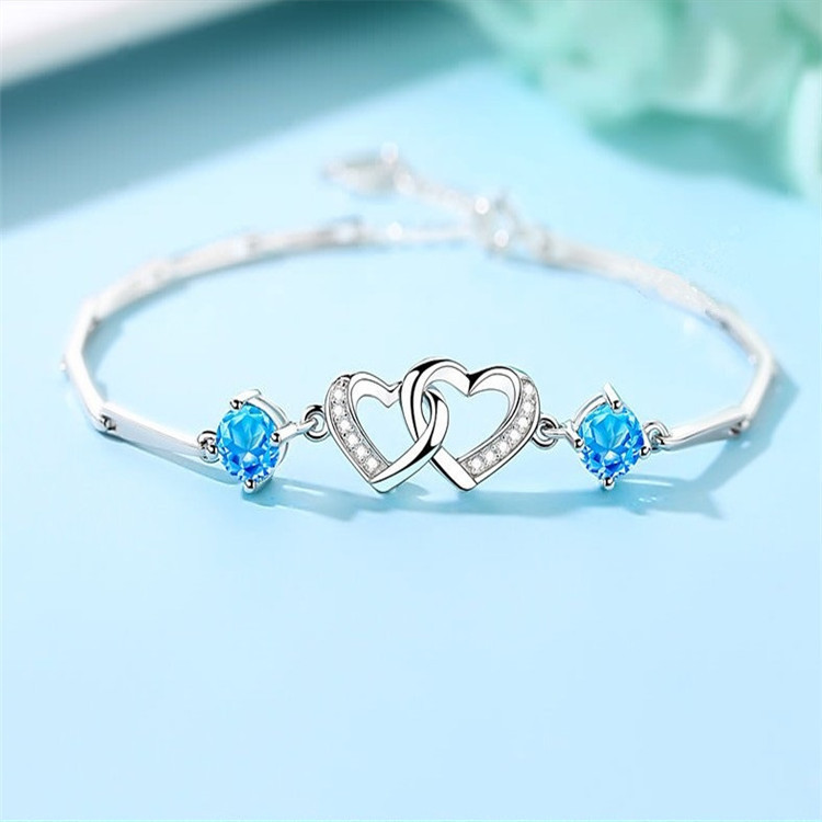S925 Silver Bracelet Heart-to-Heart Women's Korean Fashion Crystal Bracelet Jewelry for Girlfriend's Birthday Gift