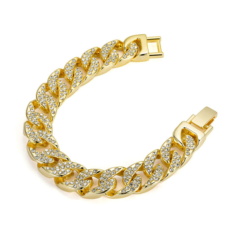 European and American style 14mm alloy line Cuban bracelet hiphop men's and women's bracelet hip hop hipster cross-border jewelry wholesale