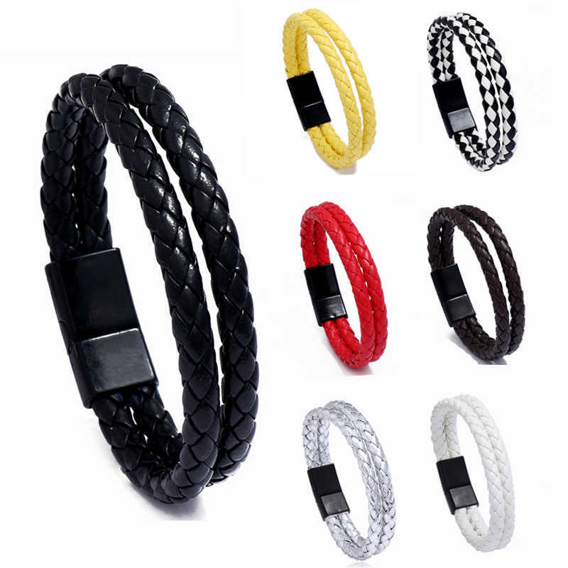 Cross-border e-commerce supply men's trendy retro woven double-loop bracelet simple fashion imitation leather bracelet bracelet