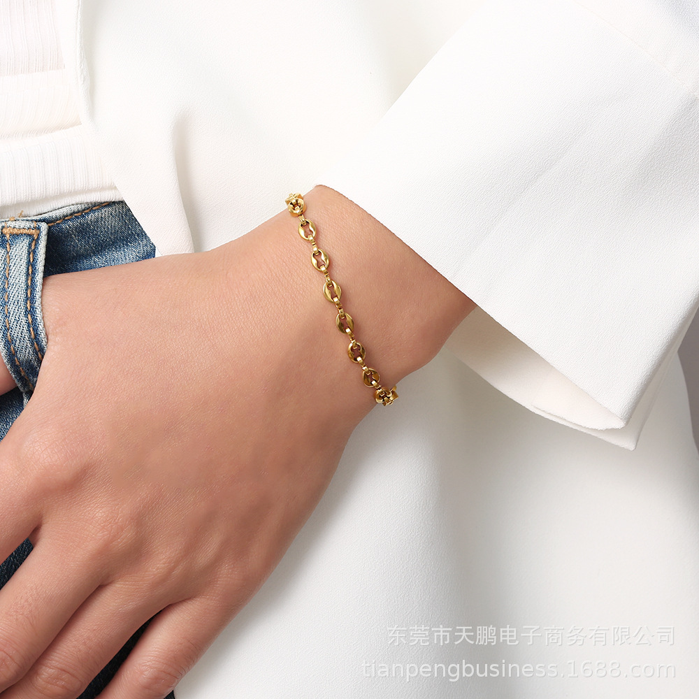 European and American Creative Trendy Chain Jewelry Korean ins Style Titanium Steel Bracelet Elegant 18K Pig Nose Bracelet for Women