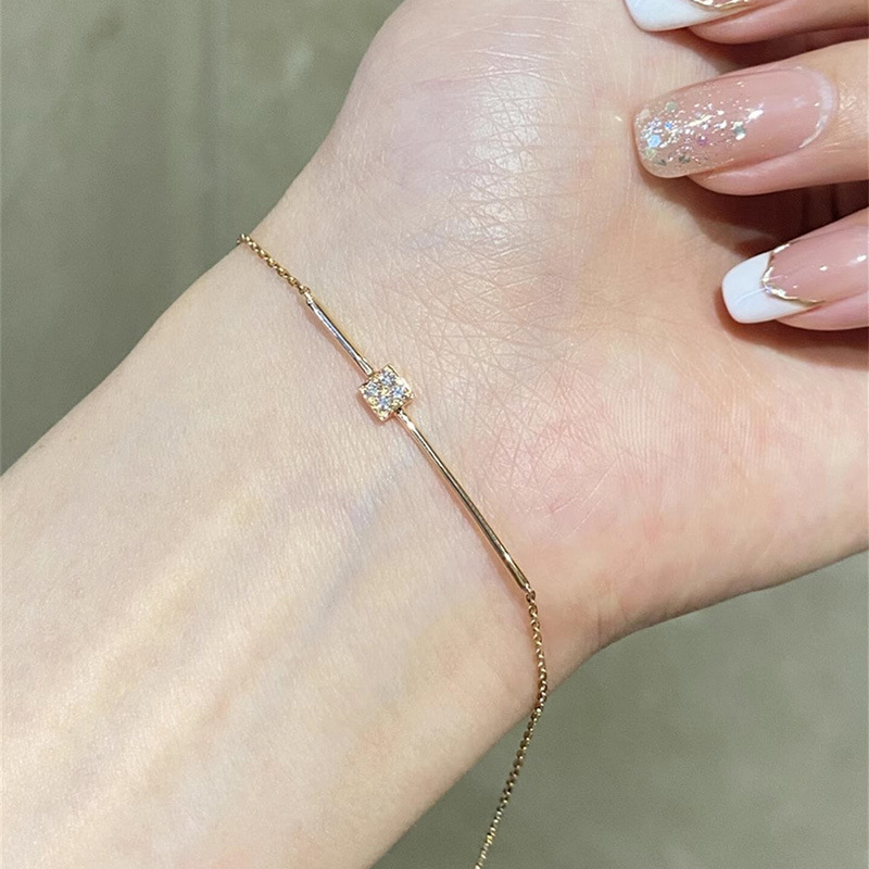 S925 Sterling Silver Ultra-small Diamond Square Bracelet Women's Light Luxury Exquisite High-end Sense bling Super Flash Sugar Zircon Bracelet
