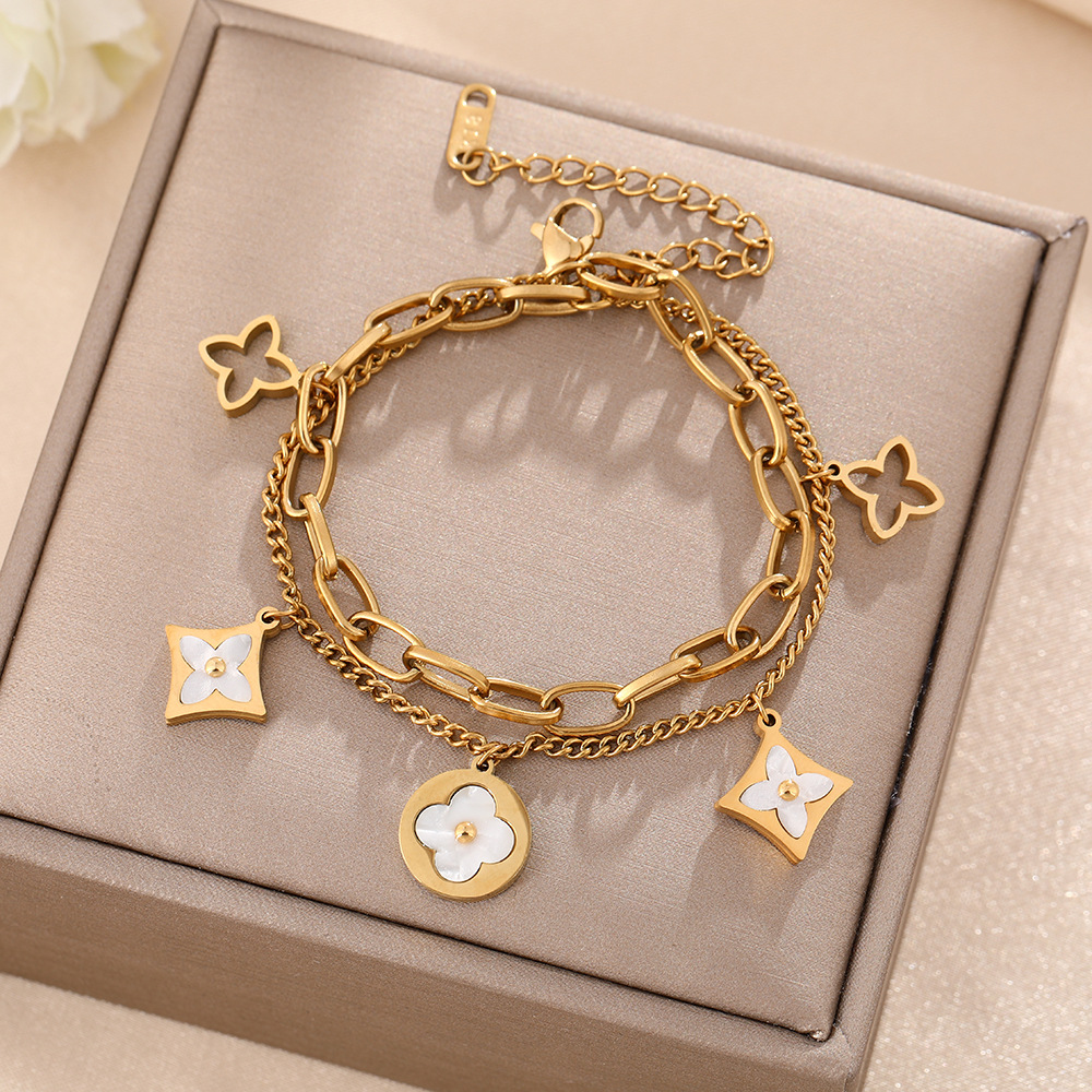 2024 Live Broadcast Four-Leaf Clover Five-Flower Bracelet for Women, European and American Trendy Classy Design Titanium Steel Bracelet for Women, Popular Jewelry