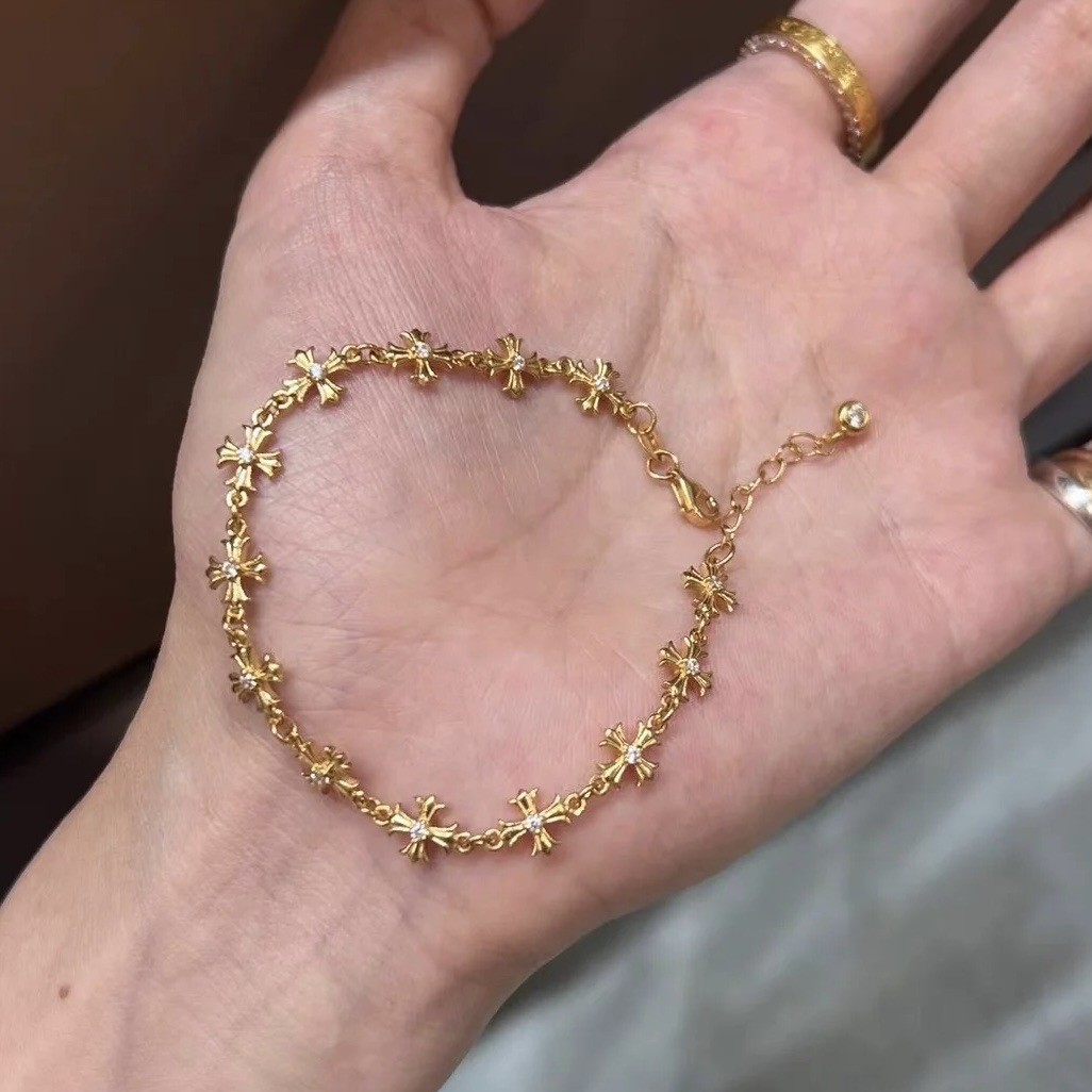 Vintage Distressed Golden Cruciferous Diamond Bracelet for Women Light Luxury Simple Personalized High-end All-match Bracelet for Girlfriend