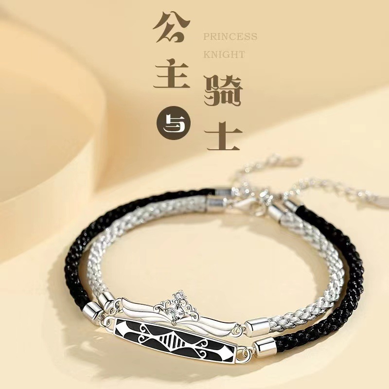 Fashion Trend Princess Knight Couple Bracelet Sterling Silver Pair of Students Woven Couple's Hand Rope for Girlfriend