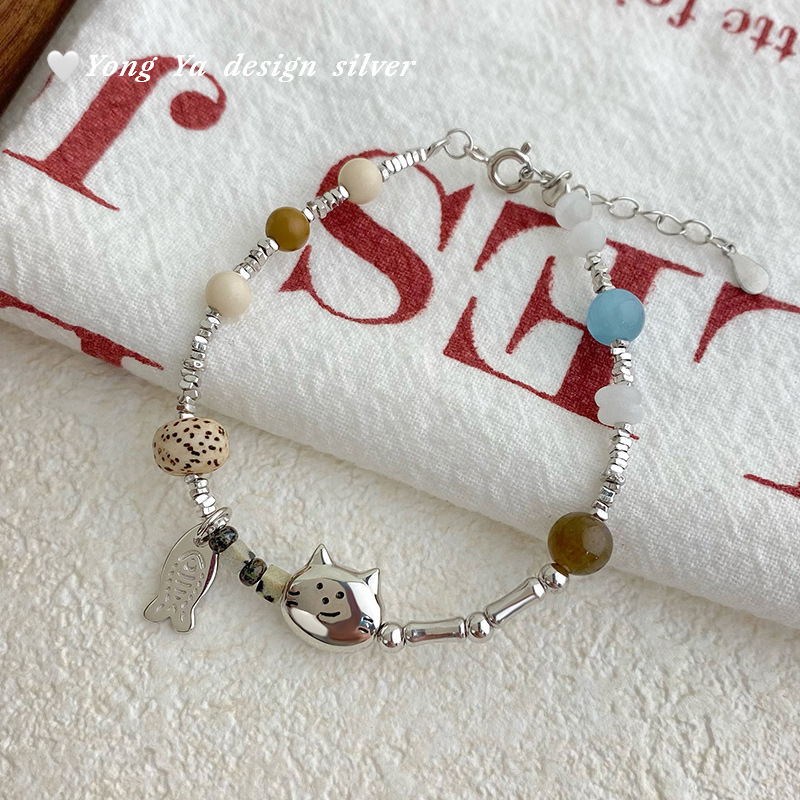 S925 Sterling Silver Cute Fish Broken Silver Bracelet Women's Sweet Design Sense Small Fresh Art Design Bracelet for Hair