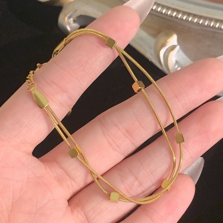 All-body titanium steel cross-border popular double-layer small square bracelet light luxury niche exquisite girlfriend girlfriends all-match jewelry