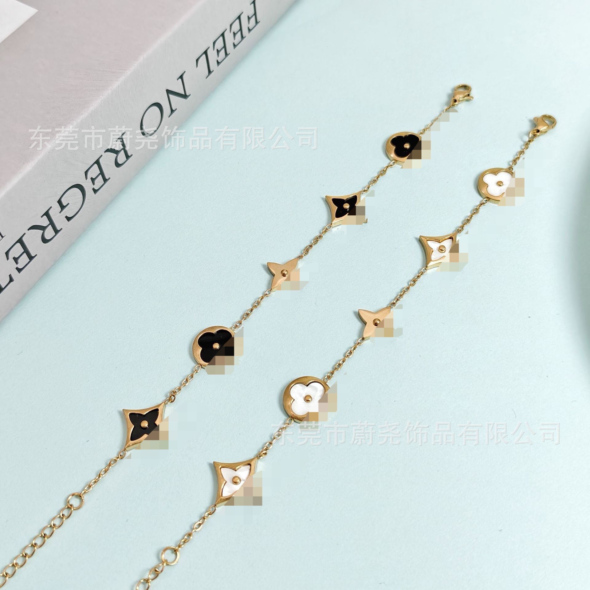 Cross-Border Popular Titanium Steel 13mm Four-Leaf Clover Bracelet Double-Sided Diamond Inlaid Intracranial Vacuum 18K Non-Fading Korean Version Trendy