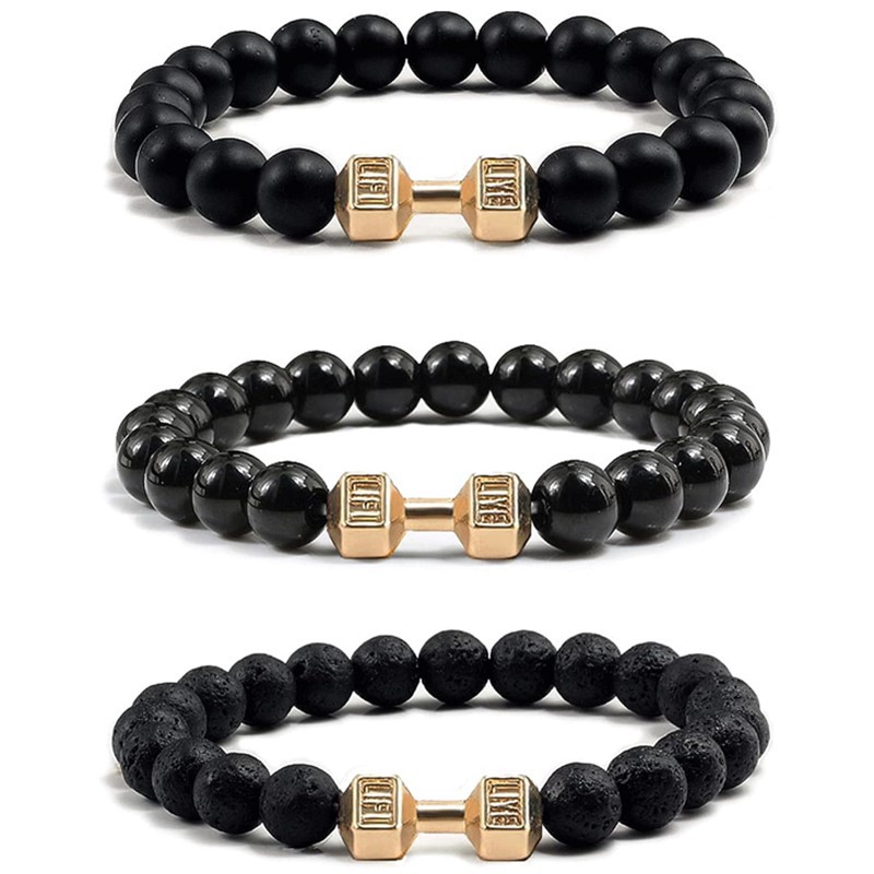 New beaded bracelet volcanic stone dumbbell European and American jewelry men and women natural stone cross-border hot accessories