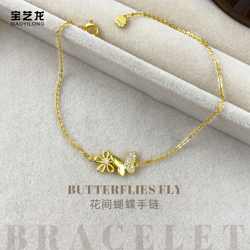 Flower Butterfly Dance Zircon Bracelet Female S925 Sterling Silver Fine Butterfly Jewelry Niche Design Fashion High-end Bracelet